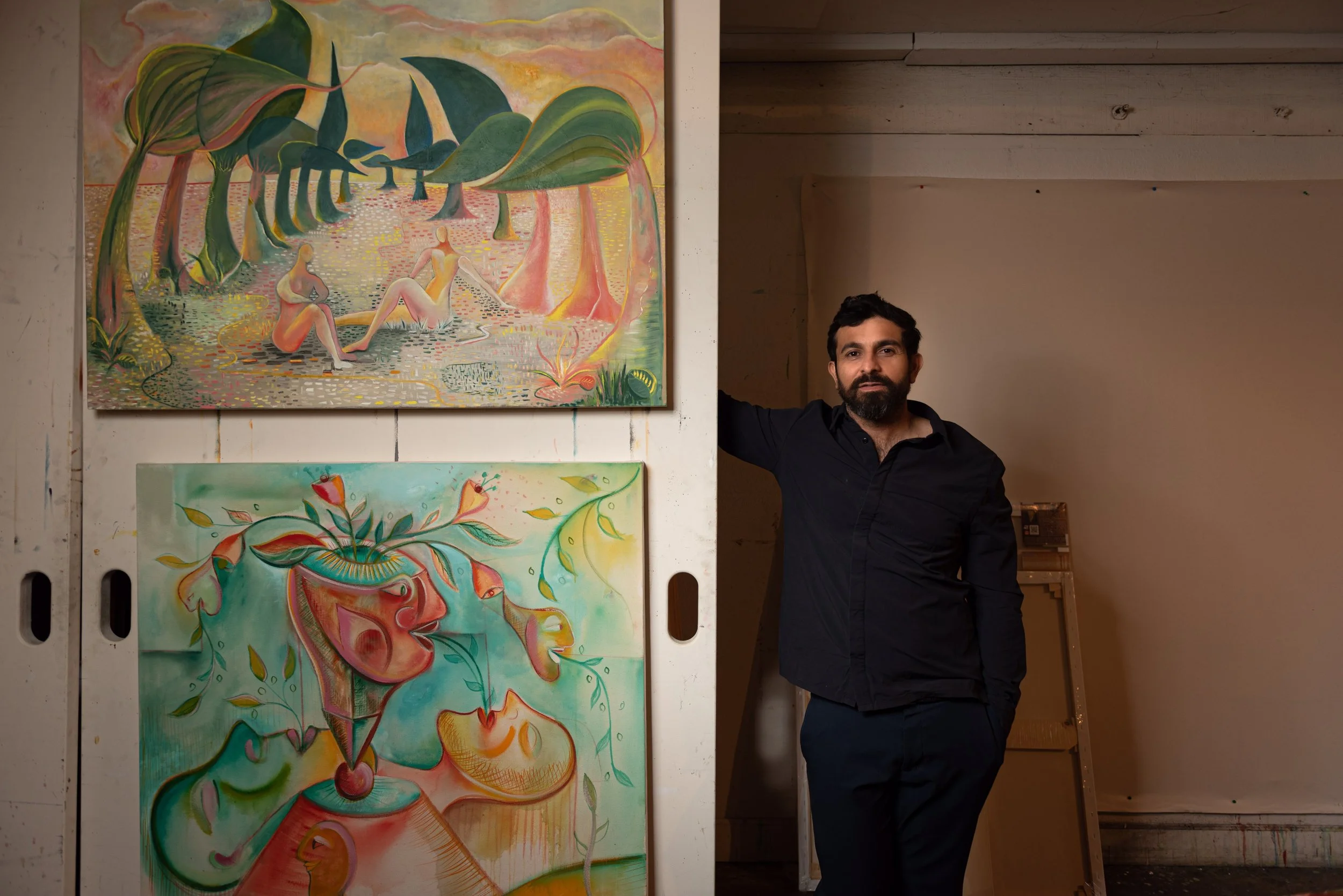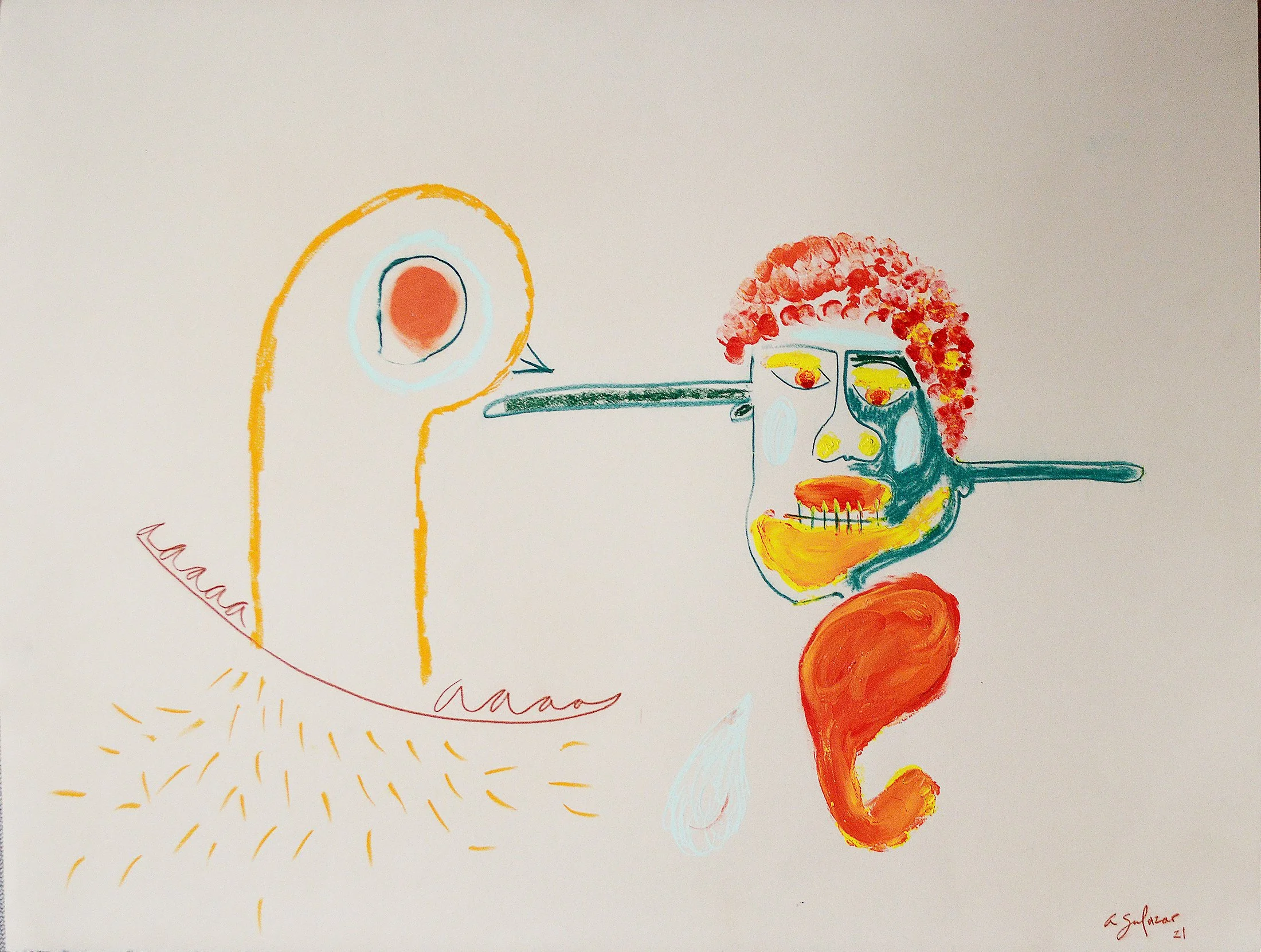 I am a Mexican painter that have lived in the United States for over 20 years. Most of my images are born out of an impulse that takes different shapes during the creative process. This process combines, luck, intuition, composition and some reasoning to control the chaos. I lack of a formal method for creating; I follow the flow of the images and let them control me instead of me controlling them.